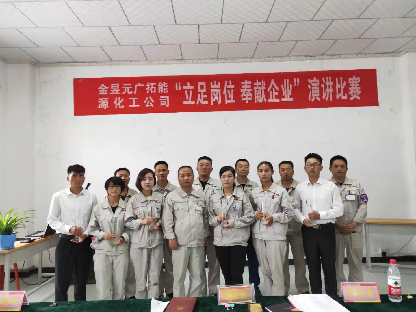 2019年7月24日,寧夏金昱元廣拓能源化工公司舉辦“立足崗位 奉獻(xiàn)企業(yè)”為主題的企業(yè)文化演講比賽。