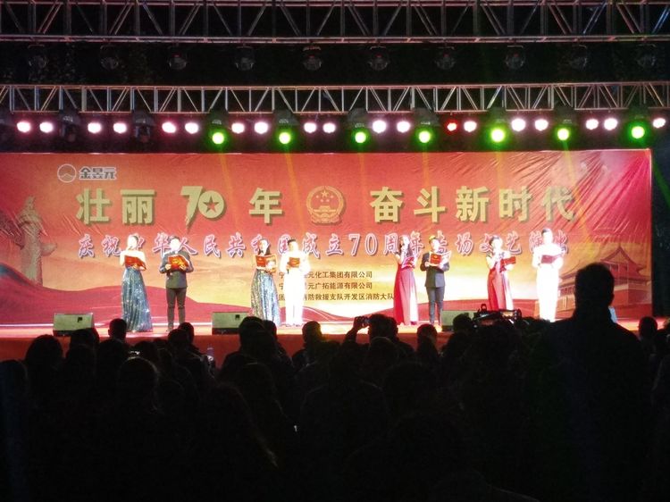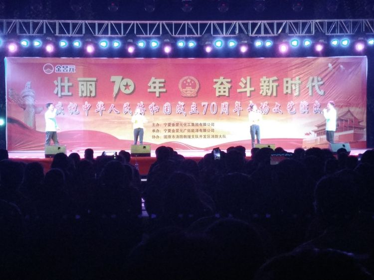 為慶祝新中國成立70周年,寧夏金昱元化工集團攜手固原市開發(fā)區(qū)消防大隊舉辦了以“壯麗70年,奮斗新時代”為主題的文藝匯演晚會,2019年9月26日晚,文藝匯演來到固原片區(qū),固原經濟開發(fā)區(qū)管委會,固原市工信局,固原市消防救援支隊開發(fā)區(qū)消防大隊,集團公司、固原片區(qū)相關領導以及各子公司職工代表,外協(xié)單位共計400余人觀看了本次文藝匯演活動。