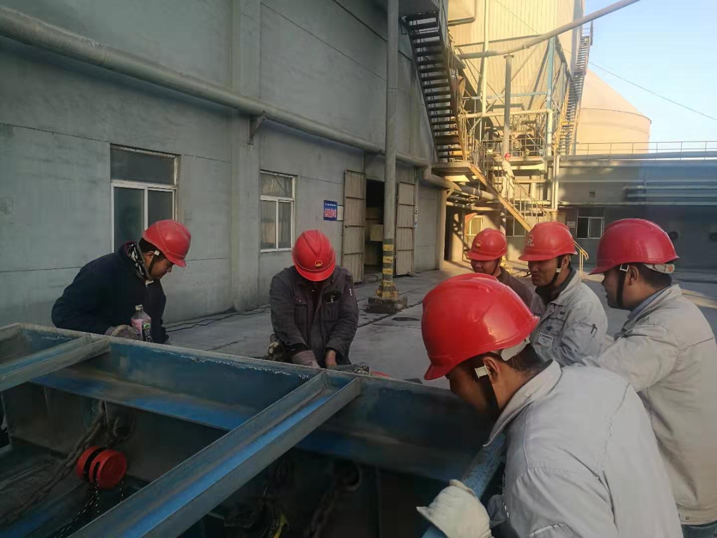 一、成品裝置長黃勃強帶領維修工對均化庫底空氣斜槽技改,認真辦理受限空間作業(yè)票證。指導維修人員計算材料,核對圖紙,然后利用簡單的工具就地進行比劃!