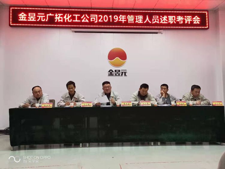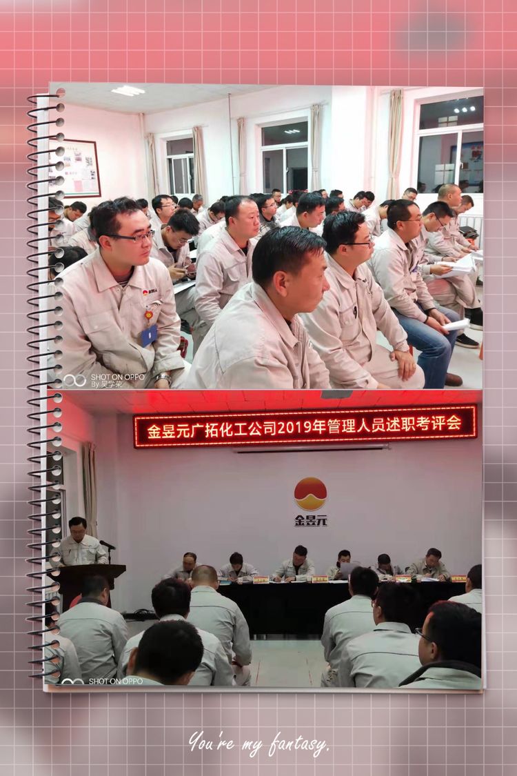 2019年11月19日—20日,廣拓化工公司利用下班時間組織召開了2019年度管理人員述職考評會,會議由興昊黨支部副書記王志杰主持,化工公司總經(jīng)理,副總經(jīng)理,安全總監(jiān),副總工程師出席,32名述職人員及110名職工代表參加。