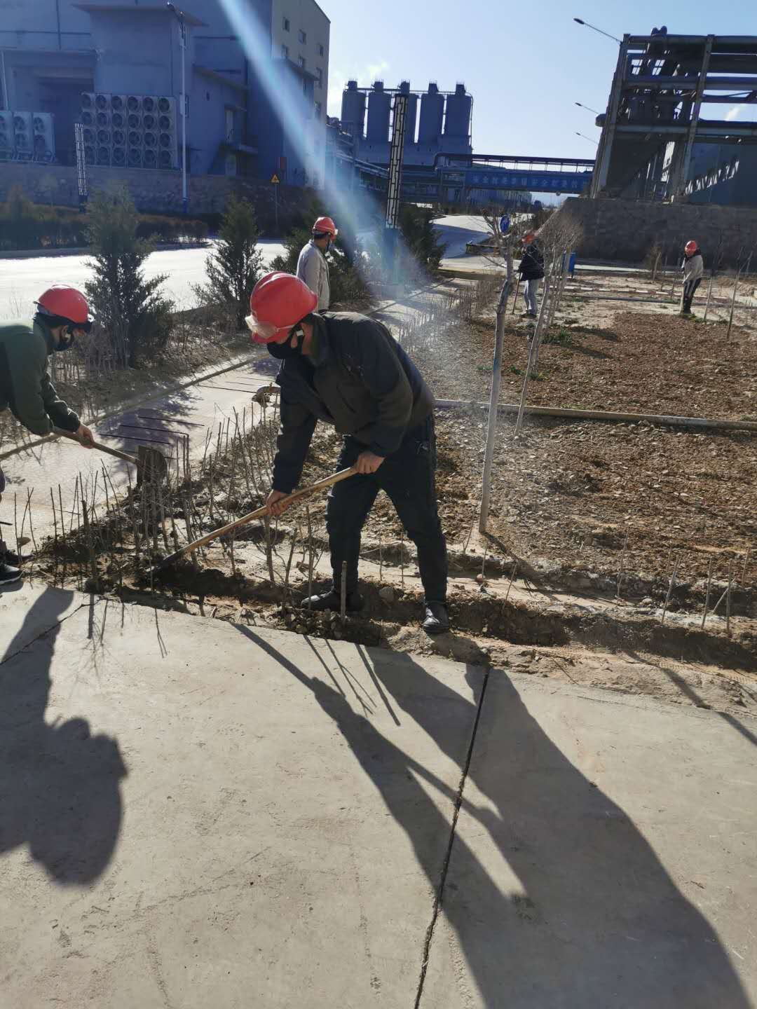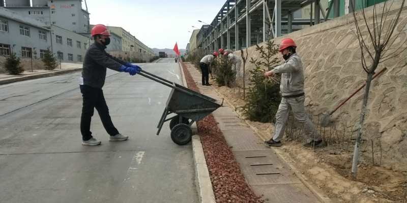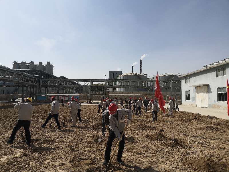 疫情防控下,黨員帶頭堅守一線不松懈。化工公司黨支部書記賈存富帶頭奔赴綠化作業(yè)一線,組織各單位黨員對液化崗位土地進行平整,身體力行踐行“不忘初心,牢記使命”。