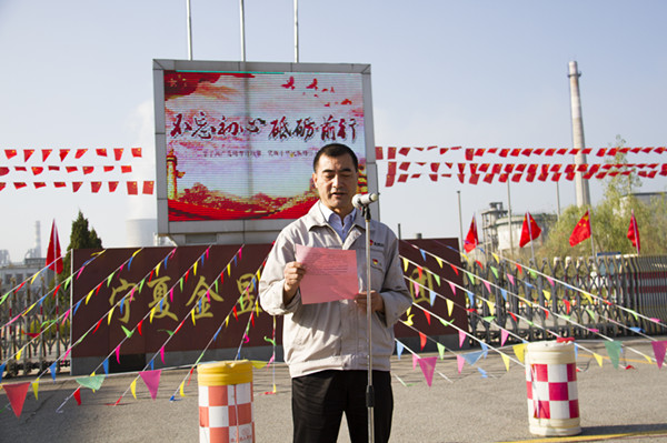 升旗儀式伊始,集團(tuán)公司黨委副書(shū)記王立軍,集團(tuán)公司副總裁、青銅峽片區(qū)總經(jīng)理尚興向升旗儀式致辭。