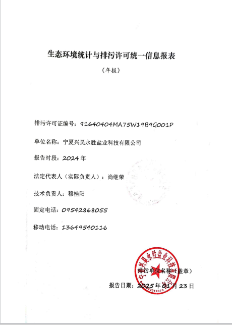 寧夏興昊永勝鹽業(yè)科技有限公司2024年排污許可執(zhí)行報(bào)告