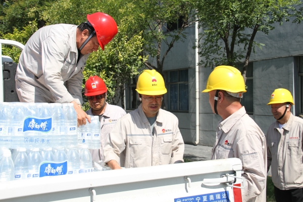 為嚴(yán)格做好高溫季節(jié)安全生產(chǎn)保障措施,持續(xù)做好防暑降溫工作,有力保障生產(chǎn)系統(tǒng)安全穩(wěn)定運(yùn)行,7月29日,寧夏金昱元化工集團(tuán)股份有限公司黨委副書記尚興、監(jiān)事會(huì)主席郭復(fù)生、副總裁周光平等領(lǐng)導(dǎo)深入青銅峽片區(qū),開(kāi)展“夏日送清涼”慰問(wèn)活動(dòng)。